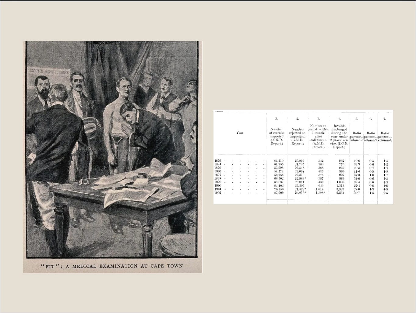 In the early 1990s the case for increasing physical activity levels among the working classes in the United Kingdom was in response to the physical condition of recruits to the armed forces. The argument focused on the need for changes at the societal level that would improve the physical condition of men required to take up arms and defend their country in future wars. The Fitzroy report, authored in 1904, detailed the physical condition of army recruits, you can find the full report here and a quote from the report is detailed below: